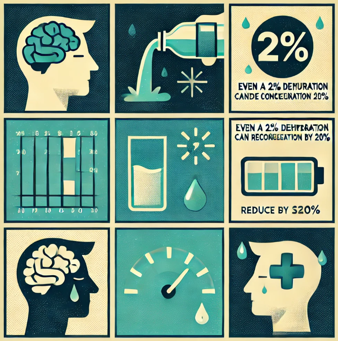 Une simple déshydratation de 2 % peut déjà faire baisser ta concentration de 20 %